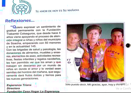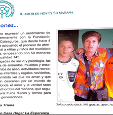 La Fundación Casa-Hogar La Esperanza surge por iniciativa de Esperanza Triana Ibarra, una madre soltera que, junto con su hija, vivió la discriminación social, laboral y moral. Esta experiencia inspiró la creación de una organización de apoyo y servicios dirigidos a las madres solteras y sus hijos. Esperanza laboró como jardinera y madre comunitaria en Programas del Instituto Colombiano de Bienestar Familiar durante 10 años, y en 1992 estableció su trabajo independiente, iniciando su labor social y comunitaria con 7 niños.