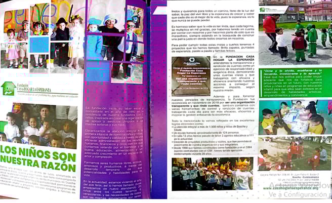 Aquí se ha plasmado una radiografía de nuestra valiosa y sentida trayectoria de servicio y contribución a una sociedad más justa y equitativa, de la mano de Dios, de todos y todas las colaboradoras, niños y niñas y sus familias y corazones generosos de todas las partes del mundo.
